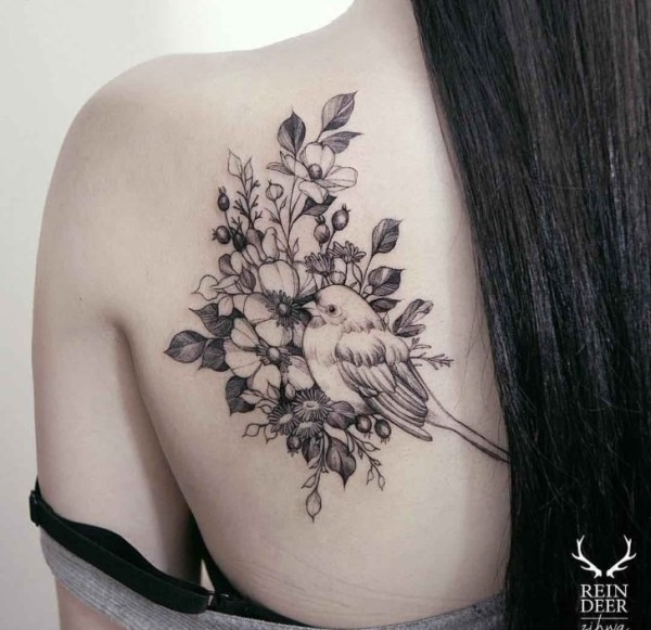 后肩唯美花藤英文图案图片_植物纹身图案大全_纹身图吧