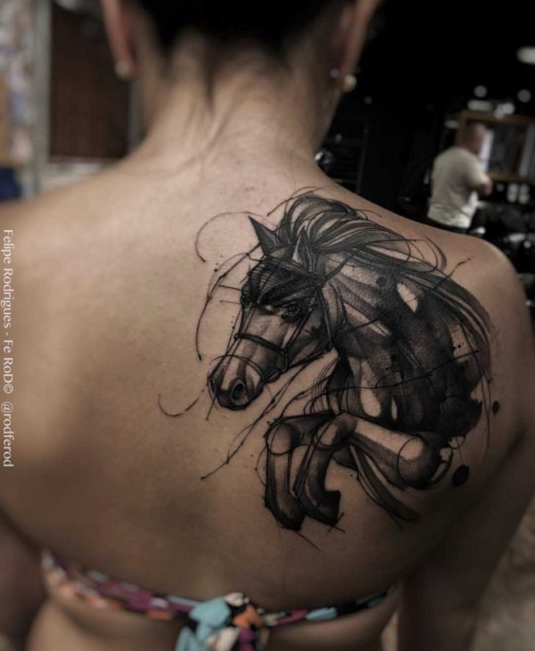 女孩后肩背上漂亮的纹身图案