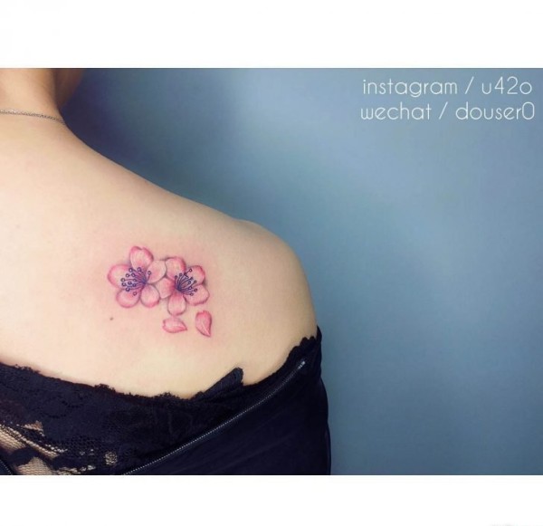 后肩唯美花藤英文图案图片_植物纹身图案大全_纹身图吧