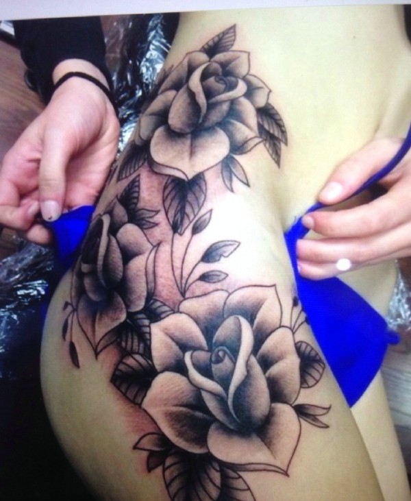 性感美女臀部延伸到腰部的玫瑰纹身图案