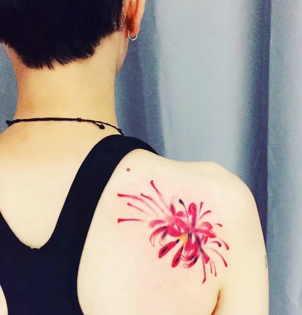 男士肩膀彼岸花纹身