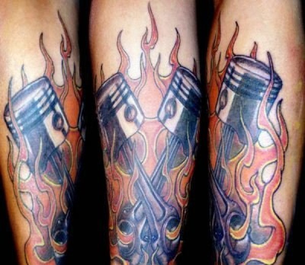 男性喜爱的代表激情燃烧与动力的活塞纹身图案
