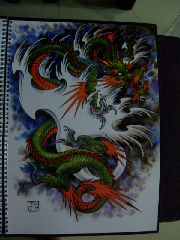 龙纹身手稿_一组老传统黑灰龙手稿纹身图案