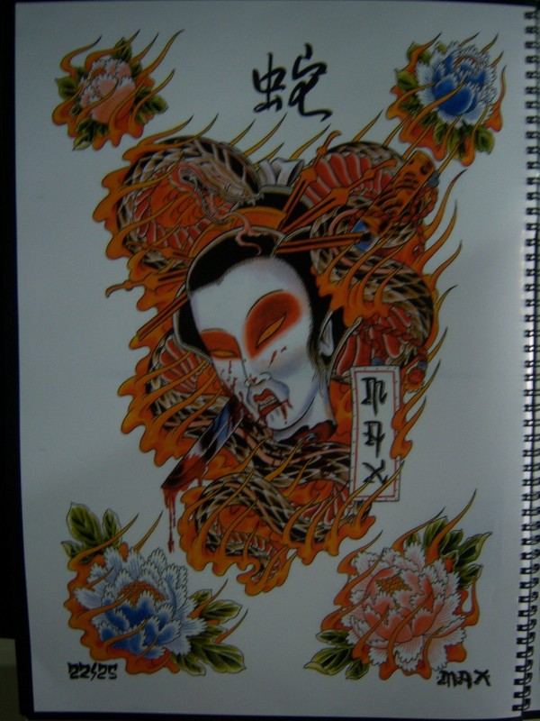 能面万媚纹身手稿_52张日式能剧面具纹身手稿图案素材欣赏