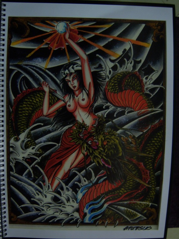 龙纹身手稿_一组老传统黑灰龙手稿纹身图案