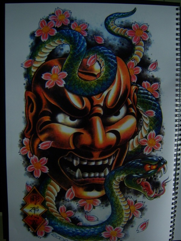 能面万媚纹身手稿_52张日式能剧面具纹身手稿图案素材欣赏