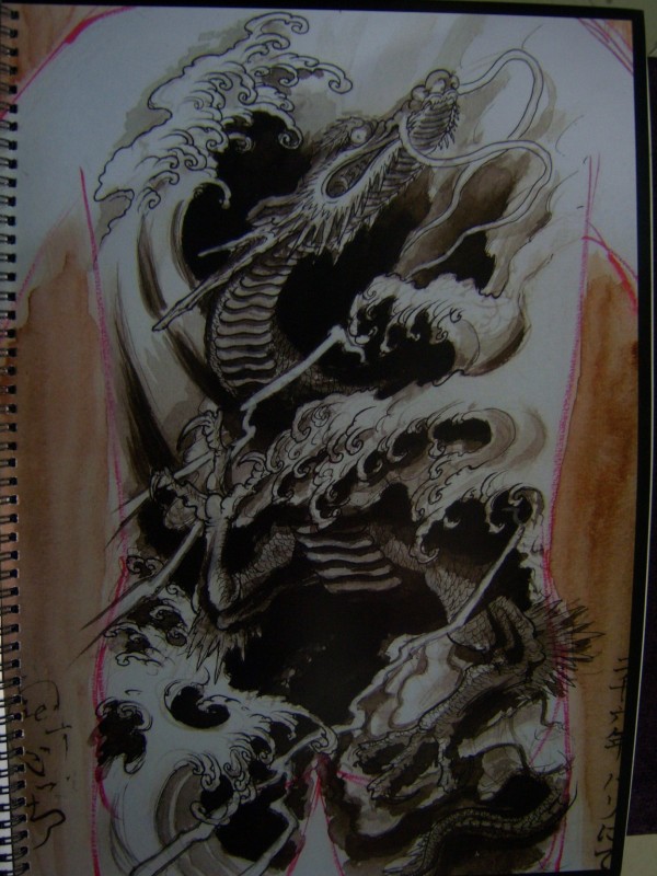 龙纹身手稿_一组老传统黑灰龙手稿纹身图案