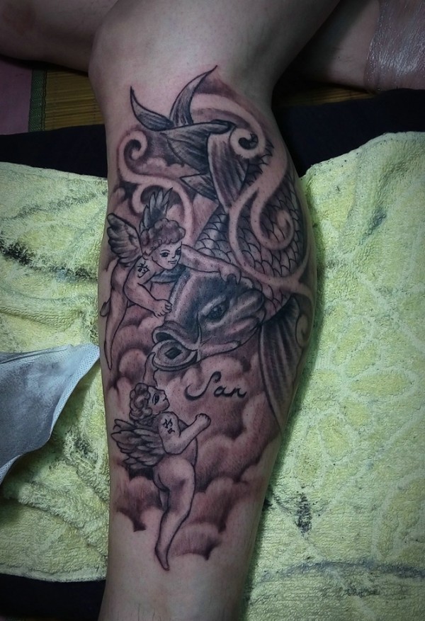 腿部鳌鱼纹身图案_腿部纹身图案大全_纹身图吧