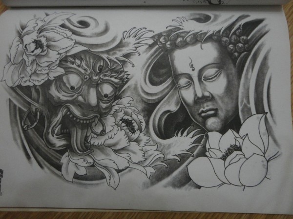传统艺妓般若纹身图案手稿