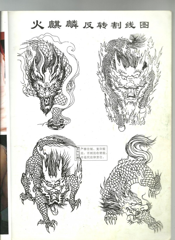 龙纹身手稿_一组老传统黑灰龙手稿纹身图案
