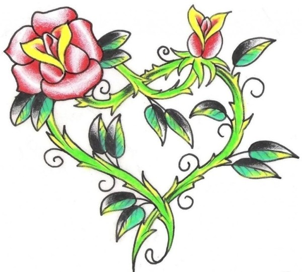 漂亮的心形花卉纹身图片手稿