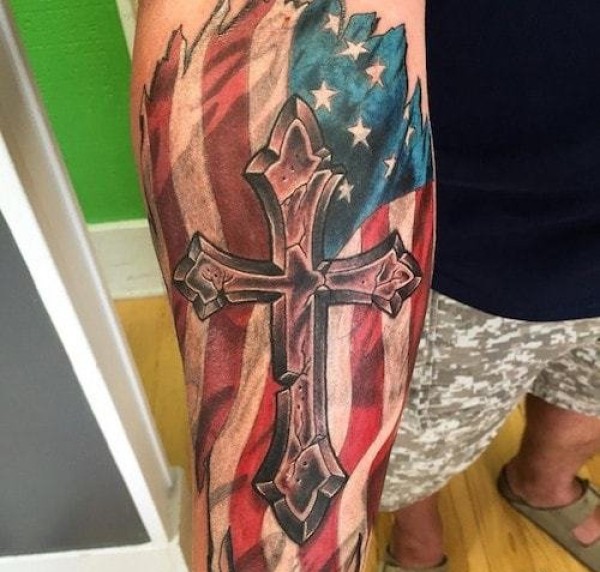 战争主题下的美国国旗纹身图案