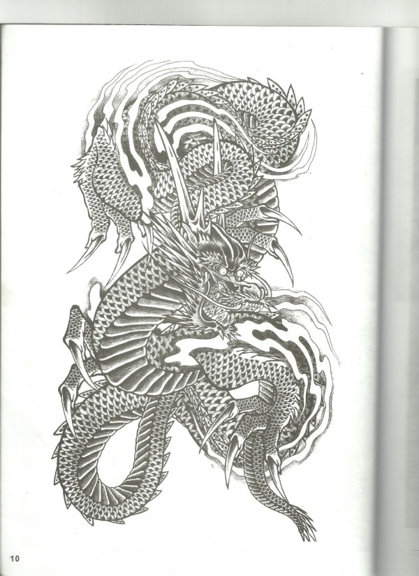 龙纹身手稿_一组老传统黑灰龙手稿纹身图案