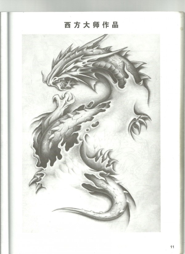 龙纹身手稿_一组老传统黑灰龙手稿纹身图案