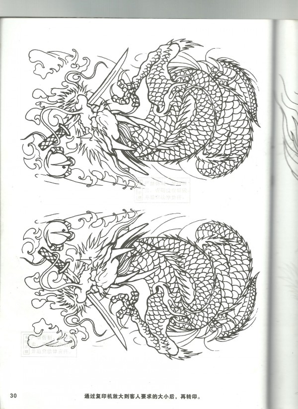 龙纹身手稿_一组老传统黑灰龙手稿纹身图案