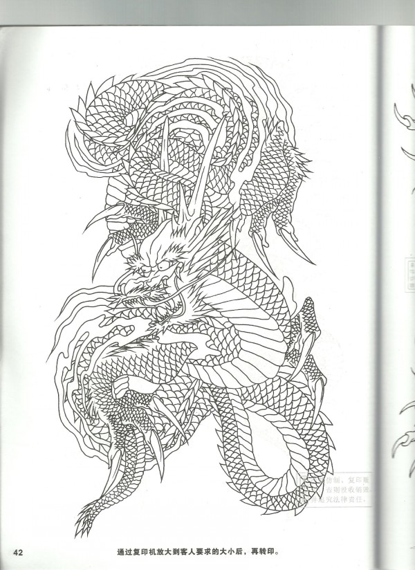 龙纹身手稿_一组老传统黑灰龙手稿纹身图案