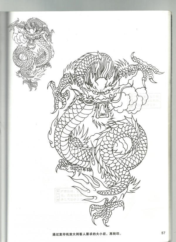 龙纹身手稿_一组老传统黑灰龙手稿纹身图案