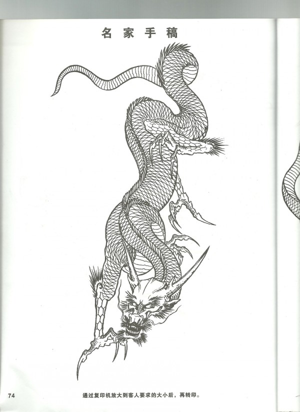 龙纹身手稿_一组老传统黑灰龙手稿纹身图案