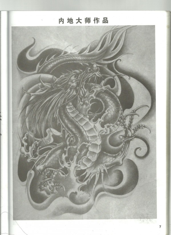 龙纹身手稿_一组老传统黑灰龙手稿纹身图案