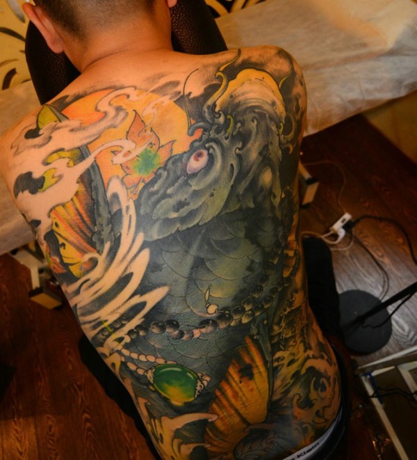 日式手彫刺青作品—半甲龙很感谢客户认可手彫刺青,手彫是日本纹身的手工雕刻技术,时间可以追溯到日本17世纪的江户时代。19世纪,手彫技术被日本黑帮挪用,被用作入会仪式,象征着从此就是江湖中人。在日式传统