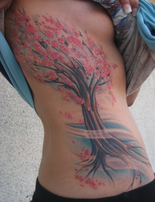 女性腰部莲花花纹刺青_腰部纹身图案大全_纹身图吧