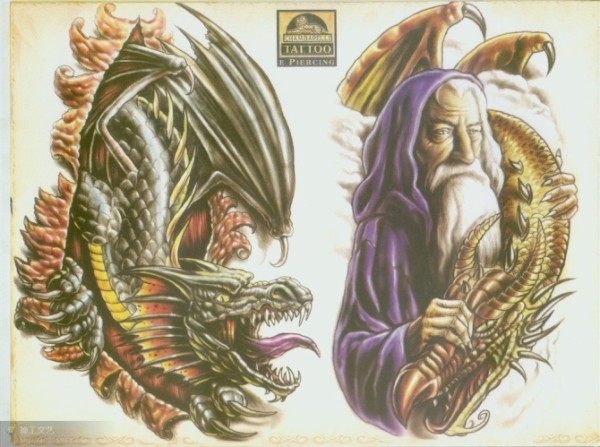 龙纹身手稿_一组老传统黑灰龙手稿纹身图案
