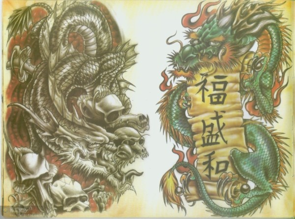龙纹身手稿_一组老传统黑灰龙手稿纹身图案