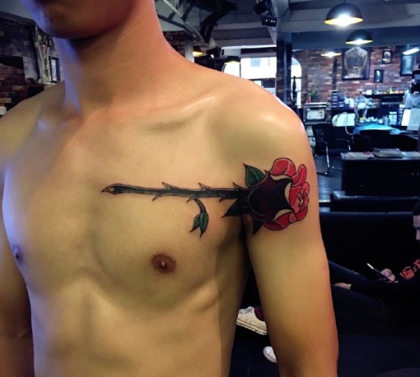男士玫瑰纹身