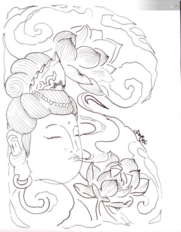 能面万媚纹身手稿_52张日式能剧面具纹身手稿图案素材欣赏