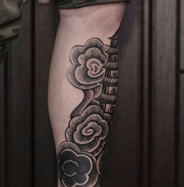 花腿纹身--一组大黑腿纹身图案作品欣赏