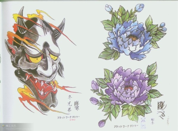 能面万媚纹身手稿_52张日式能剧面具纹身手稿图案素材欣赏