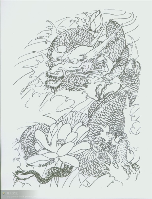 龙纹身手稿_一组老传统黑灰龙手稿纹身图案