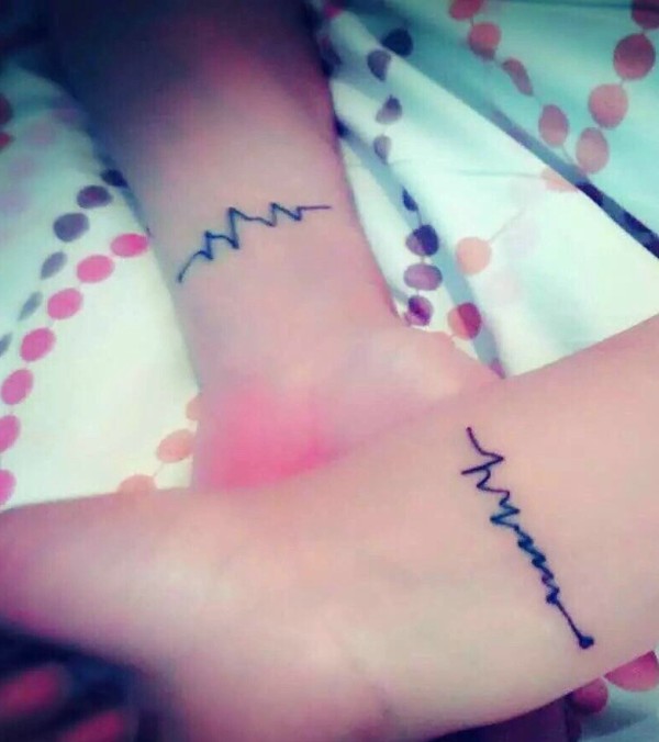 手臂情侣心电图纹身图案很时尚