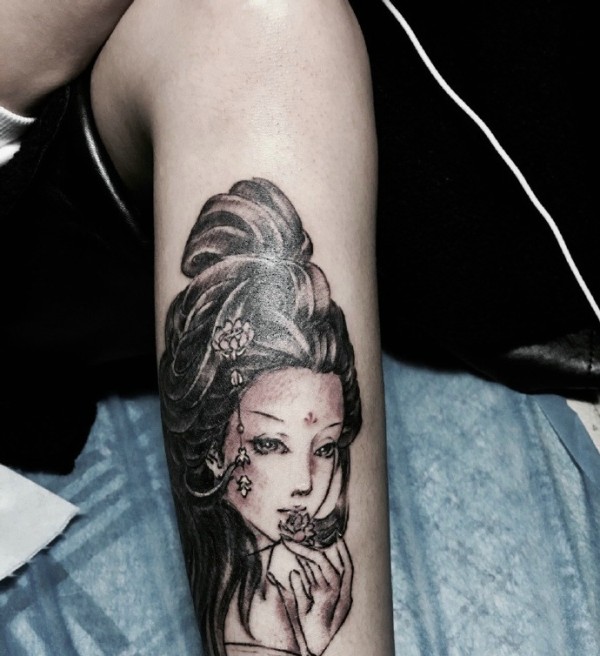 传统花腿纹身--18张传统风格的大花腿纹身图案作品
