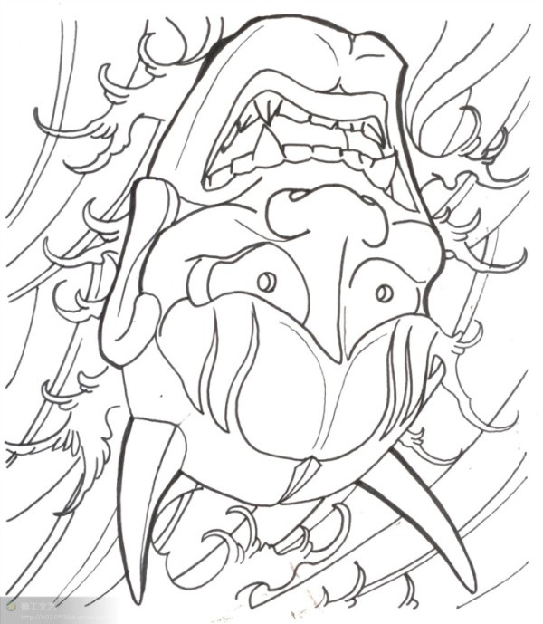 能面万媚纹身手稿_52张日式能剧面具纹身手稿图案素材欣赏