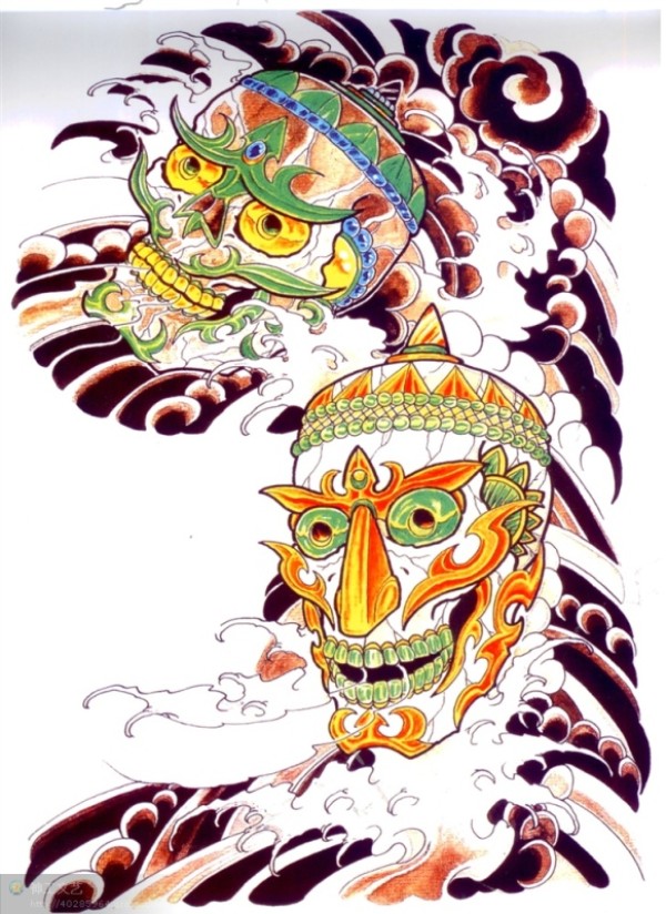 能面万媚纹身手稿_52张日式能剧面具纹身手稿图案素材欣赏