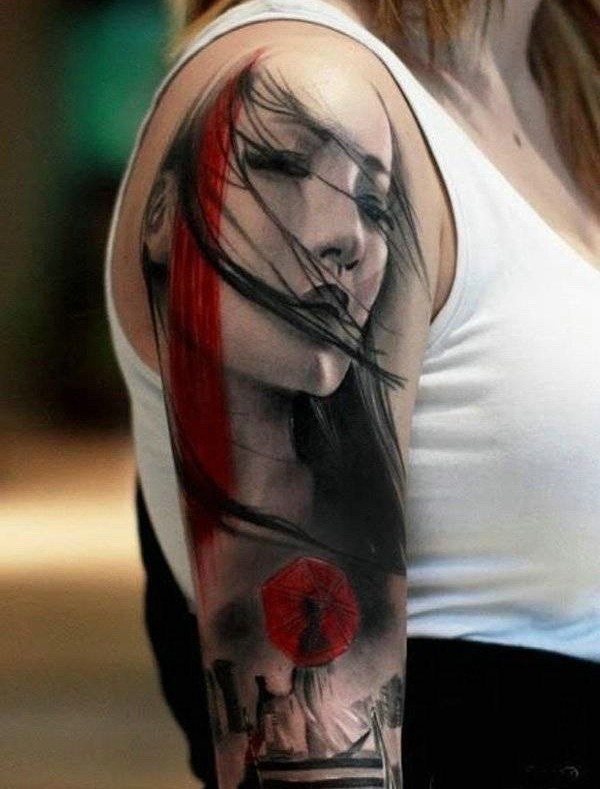 女性肩部肖像刺青_肖像纹身图案大全_纹身图吧