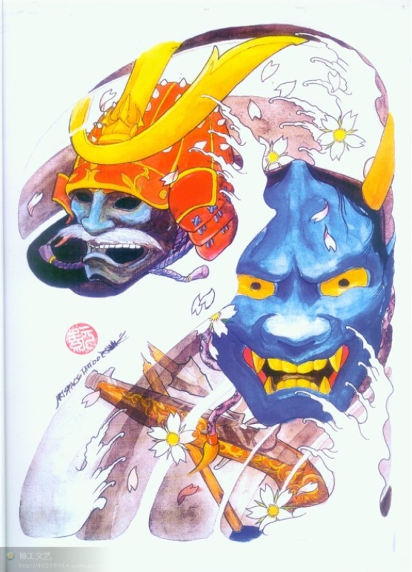 传统艺妓般若纹身图案手稿