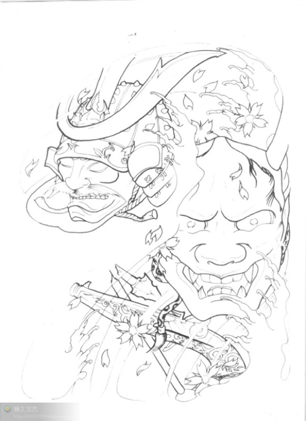 能面万媚纹身手稿_52张日式能剧面具纹身手稿图案素材欣赏