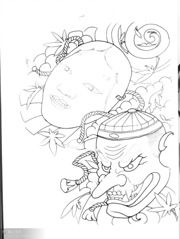 能面万媚纹身手稿_52张日式能剧面具纹身手稿图案素材欣赏