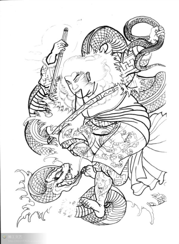 龙纹身手稿_一组老传统黑灰龙手稿纹身图案