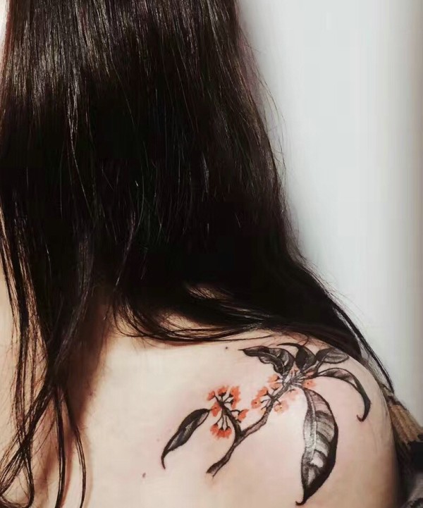 女生肩花纹身_15张女性双肩对称的肩花纹身图案作品图片