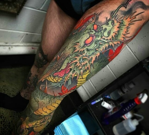 传统花腿纹身--18张传统风格的大花腿纹身图案作品