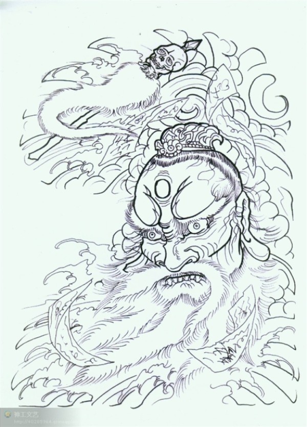 能面万媚纹身手稿_52张日式能剧面具纹身手稿图案素材欣赏