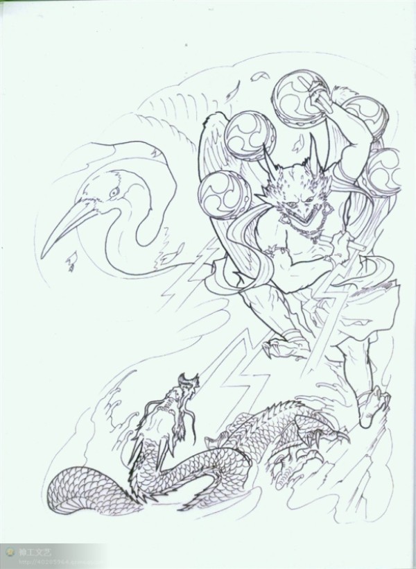 龙纹身手稿_一组老传统黑灰龙手稿纹身图案
