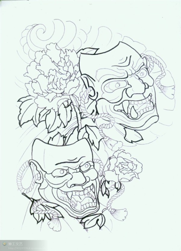 能面万媚纹身手稿_52张日式能剧面具纹身手稿图案素材欣赏