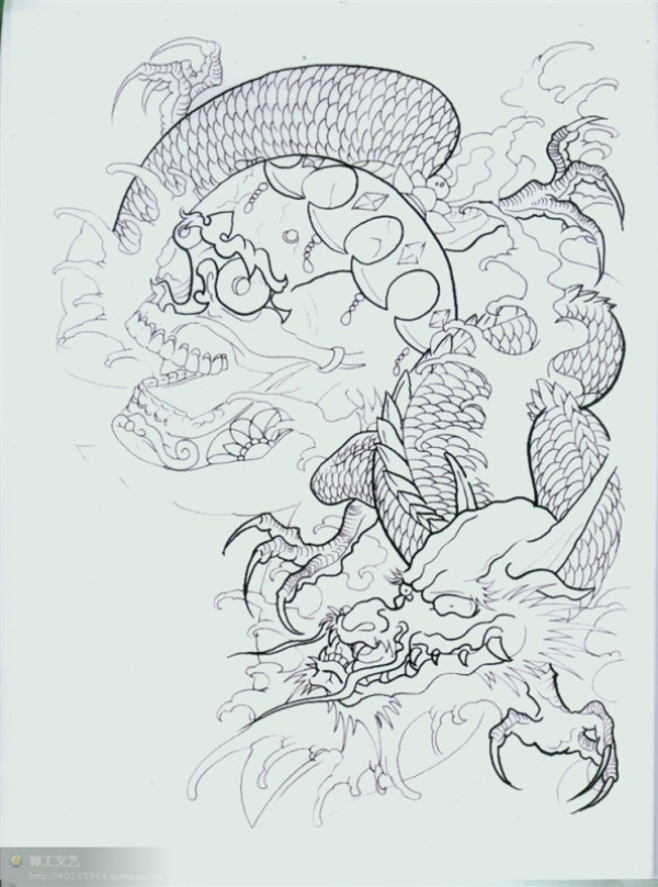 龙纹身手稿_一组老传统黑灰龙手稿纹身图案