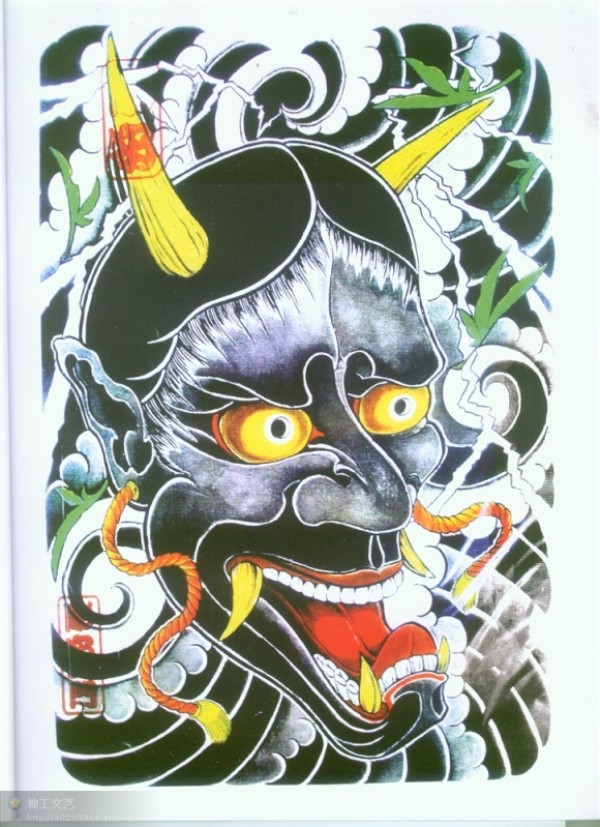 能面万媚纹身手稿_52张日式能剧面具纹身手稿图案素材欣赏