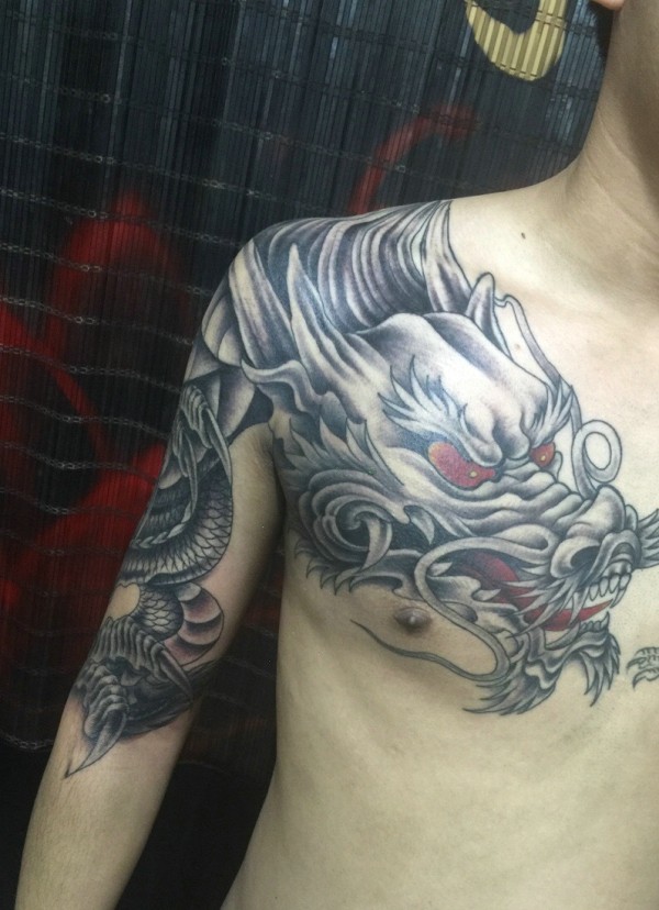 日式手彫刺青作品—半甲龙很感谢客户认可手彫刺青,手彫是日本纹身的手工雕刻技术,时间可以追溯到日本17世纪的江户时代。19世纪,手彫技术被日本黑帮挪用,被用作入会仪式,象征着从此就是江湖中人。在日式传统