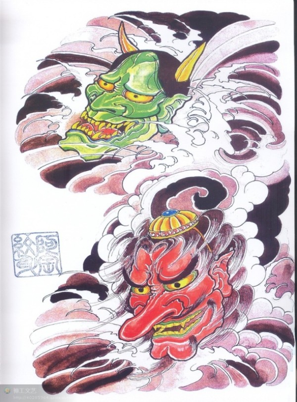 能面万媚纹身手稿_52张日式能剧面具纹身手稿图案素材欣赏